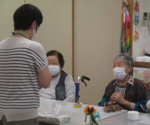 このクッションには、私たち職員から利用者さんそれぞれに 感謝のことばを綴った手作りの のしをかけました。