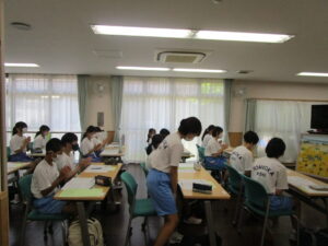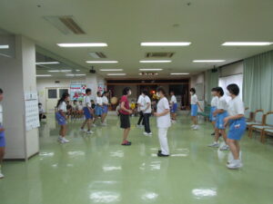場所を移動して、盆踊りの練習です。さすが中学生😊 ふりを覚えるのがはやいです✨