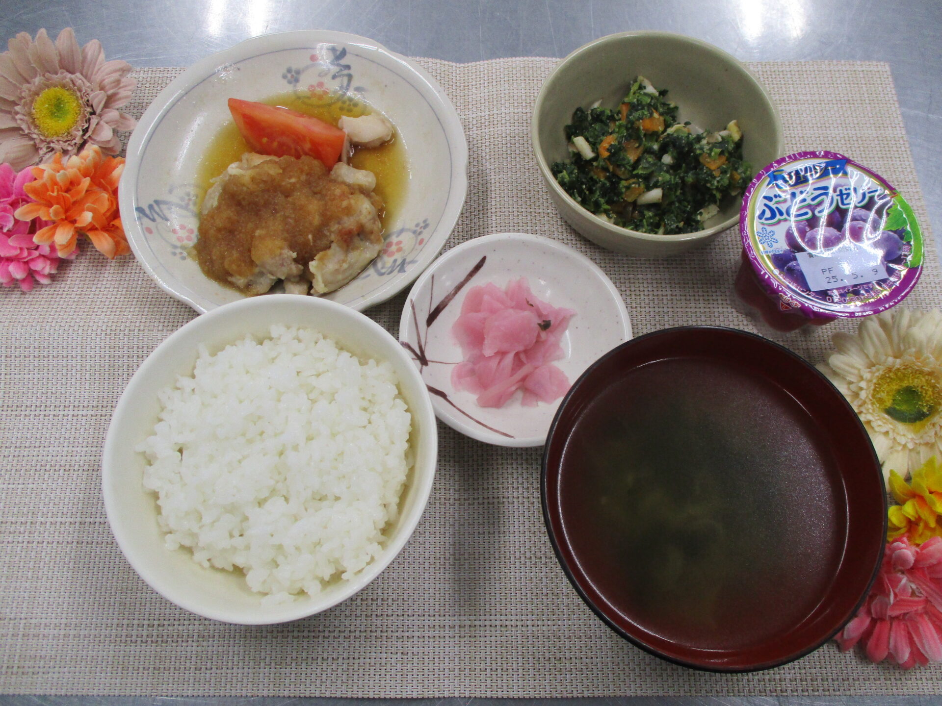 4/28鶏肉の和風ソテー&4/29炊き込みご飯♪ 今日のランチ&おやつ♪ 2025.04.29 4/28の昼食は鶏肉の和風ソテーでした😊 ★4/28のランチメニュー&おやつ★ 鶏肉の和風ソテー わかめスープ ほうれん草のゴマ酢和え 桜つぼ漬け ぶどうゼリー🍇 4/29の昼食は炊き込みご飯でした✨ ★本日のランチメニュー★ 炊き込みご飯 〈粥〉五目雑炊 ホッケの深味干焼き すまし汁 小松菜のお浸し さくら漬け