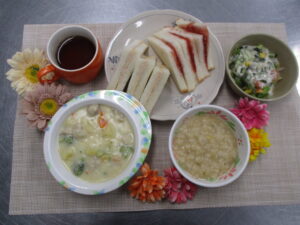 10/10サンドイッチ&10/13麻婆豆腐♪ 今日のランチ&おやつ♪ 2025.10.13 10/10の昼食はサンドイッチでした🥪 ★10/10のランチメニュー&おやつ★ サンドイッチ(ツナ、イチゴ) 〈粥〉ツナリゾット クリームシチュー わかめサラダ🥗 紅茶 10/13の昼食は麻婆豆腐でした😊 ★10/13のランチメニュー★ 麻婆豆腐 味噌汁(じゃがいも、もやし) ほうれん草の三色和え物 たくあん