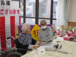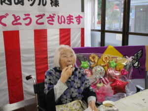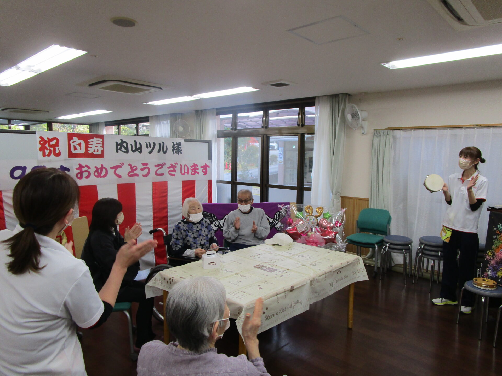 昨日は交流ホールで利用者様の白寿のお祝いをしました😊