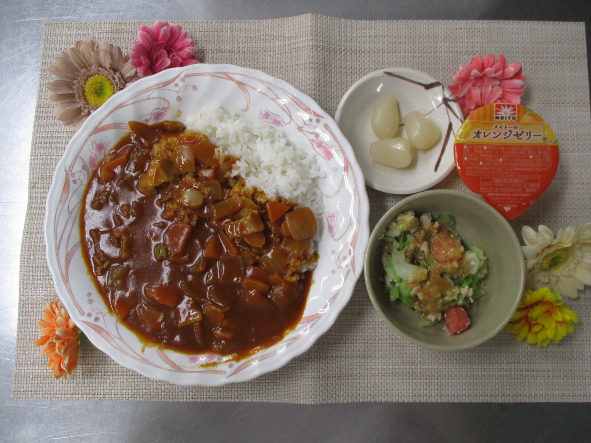 ハヤシライス🌟 今日のランチ&おやつ♪ 2025.11.17 本日の昼食はハヤシライスでした😊 トマトの酸味が効いていて、さっぱりとおいしくいただけました♪ ★本日のランチメニュー&おやつ★ ハヤシライス🍛 バンバンジーサラダ🥗 らっきょう漬け オレンジゼリー🍊