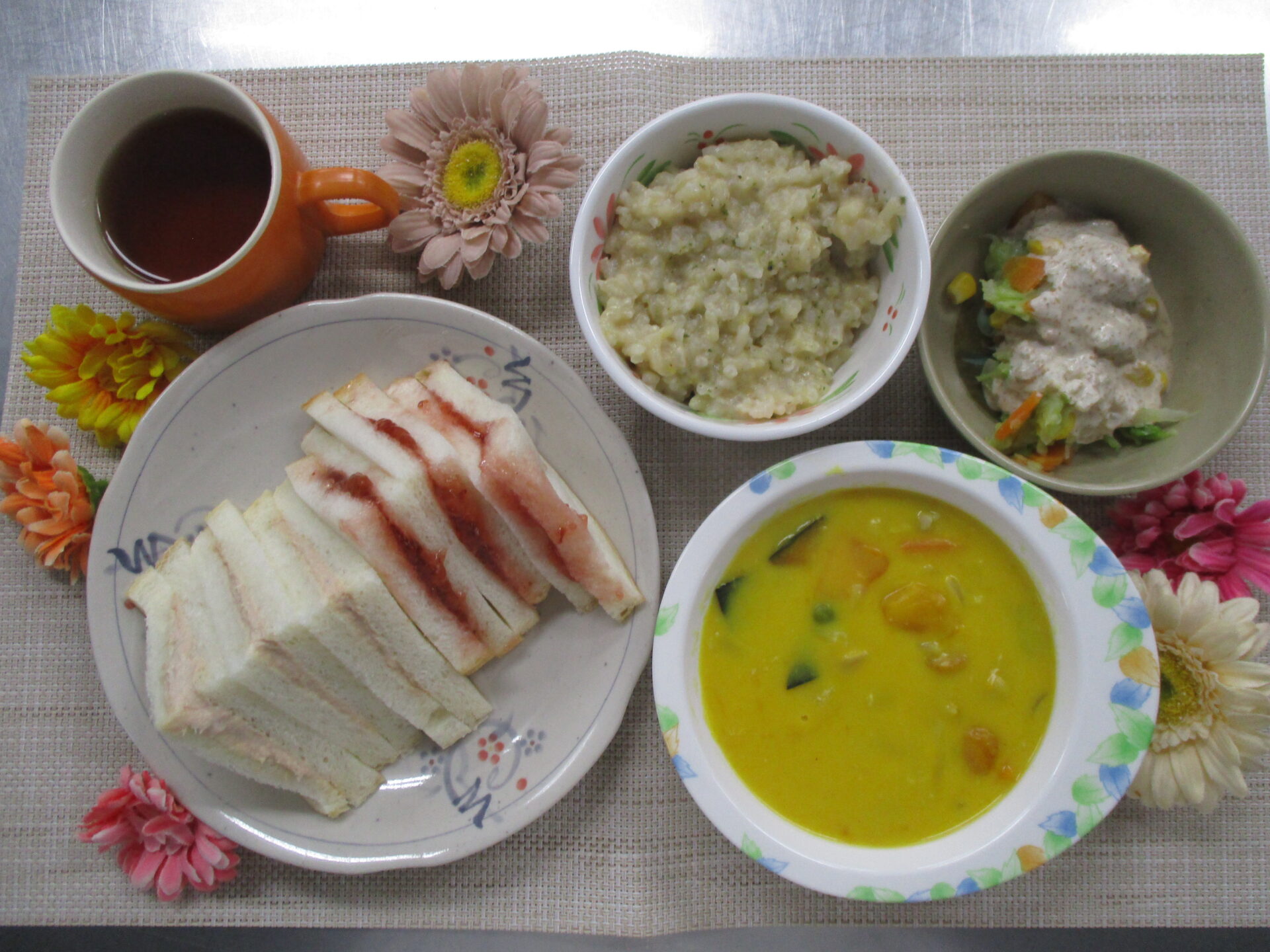 サンドイッチ🥪 今日のランチ&おやつ♪ 2025.11.26 本日の昼食はサンドイッチでした😊 イチゴジャムとツナマヨネーズをたっぷり塗ったサンドイッチです♪ かぼちゃシチューも寒い日にぴったりのメニューでした✨ ★本日のランチメニュー★ サンドイッチ(イチゴジャム、ツナ)🥪 〈粥〉ツナリゾット かぼちゃシチュー 三色サラダ🥗 紅茶