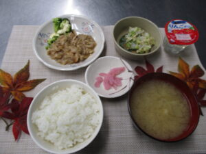 12/12豚肉のユーリンチー風🐖 今日のランチ&おやつ♪ 2025.12.14 12/12の昼食は豚肉のユーリンチー風でした♪ ★12/12のランチメニュー&おやつ★ 豚肉のユーリンチー風🐷 味噌汁(大根、しめじ) 白菜の和え物 さくら漬け りんごゼリー🍎