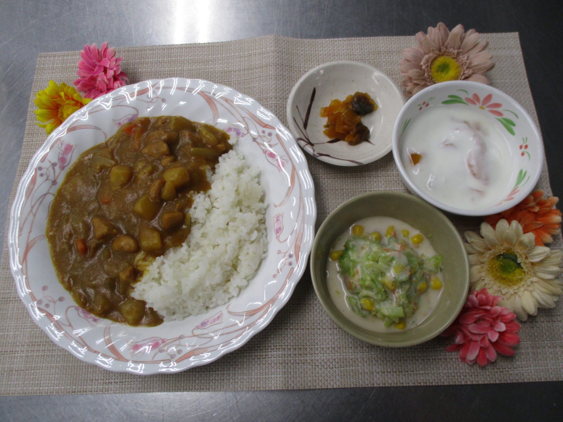 カレーライス🍛 今日のランチ&おやつ♪ 2025.12.26 本日の昼食はカレーライスでした♪ 甘口で食べやすいカレーライスは、利用者様にも人気のメニューです😊 ★本日のランチメニュー&おやつ★ カレーライス🍛 キャベツの三色サラダ🥗 福神漬け フルーツヨーグルト
