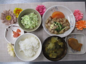 本日の昼食は鶏の照り焼きでした😊