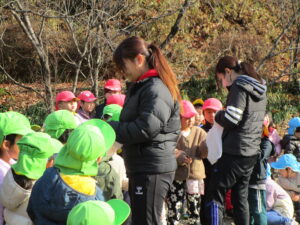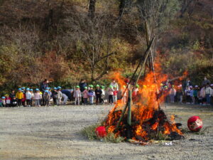 事務長さんが、園児たちにどんど焼きの注意事項を話すと、「はーい!」と元気な声が返ってきました😊