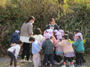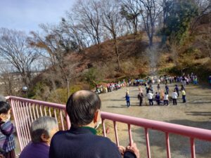 桜こども園、杜こども園の園児たちと先生方がどんど焼きに参加するためにきてくれました。