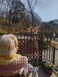 交流ホール前やベランダから見学されている利用者さんもいました。