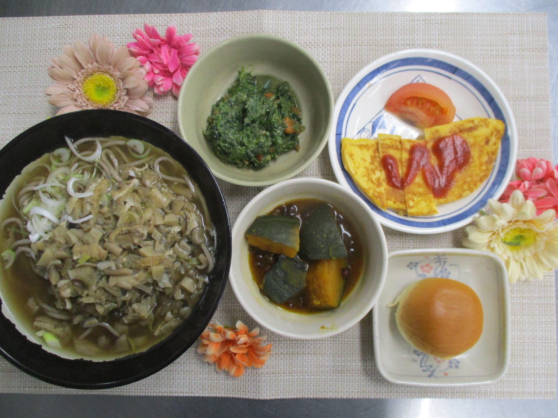 まいたけ、しめじ、油揚げ、ねぎをたっぷり乗せた