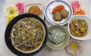 今日のランチ&おやつ♪ きつねそば🦊 本日の昼食はきつねそばでした♪ ★本日のランチメニュー&おやつ★ きつねそば 〈粥〉野菜入り鶏つくね さつまいもの煮付 ほうれん草の白和え 薄皮チョコパン 2025.11.05 今日のランチ&おやつ♪