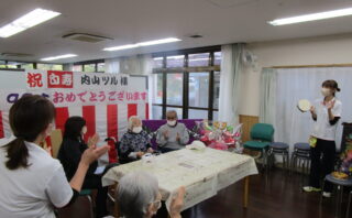 レクリエーション ㊗️白寿(特養) 昨日は交流ホールで利用者様の白寿のお祝いをしました😊 素敵なプレゼントを受け取り、とっても嬉しそう🎁😊 しっかりとした感謝の言葉を伝えられて、ご家族も職員も感動してしまいました✨ プレゼントと一緒に記念撮影... 2025.11.13 レクリエーション